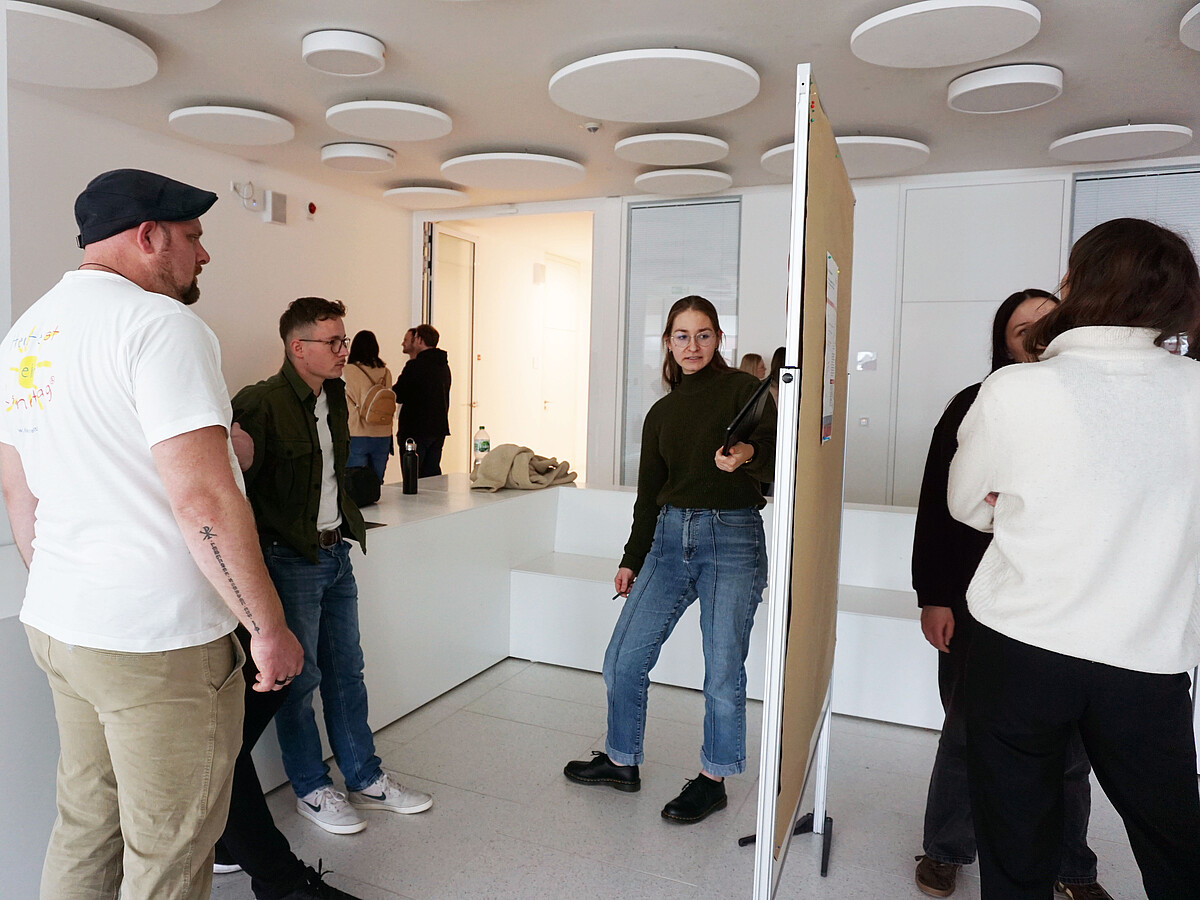 „Der Gallery Walk bot den Studierenden die Chance, ihre Projektideen anschaulich zu präsentieren und direktes Feedback zu erhalten – ganz wie Künstlerinnen und Künstler, die bei einer Ausstellung Rede und Antwort stehen“, erklärt Prof. Dr. Claudia Mayer. „Auf diese Weise bekommen sie wertvolle Impulse, um ihre Forschungsprojekte praxisnah weiterzuentwickeln.“