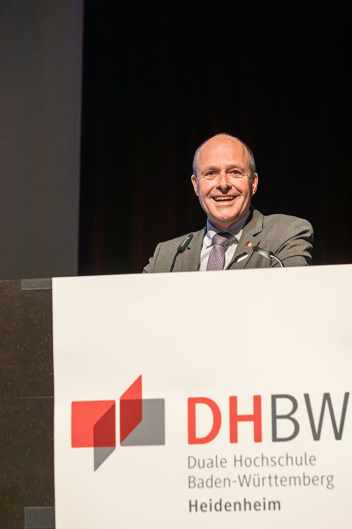 Doch nicht nur das: Um die DHBW Heidenheim und damit auch die Studierenden und Dualen Partner fit für die Zukunft zu machen, legte Przywara während seiner Amtszeit besonderen Wert auf die permanente Weiterentwicklung der vielfältigen Studiengänge insbesondere durch Inhalte der Digitalisierung. Unter seiner Leitung wurde der Neubau auf dem ehemaligen WCM-Gelände in Heidenheim als „Digitalcampus“ konzipiert – ein zentraler Baustein für interdisziplinäres Studieren und Lehren in Zeiten digitaler Transformation. „Wir beschränken uns dabei nicht auf eine Fakultät, sondern zielen auf eine themenorientierte, interdisziplinäre Zusammenarbeit ab“, so der Rektor. Auch wurde das Portfolio der DHBW Heidenheim in den vergangenen Jahren um verschiedene Studienangebote mit dem Fokus auf Digitalisierung erweitert, darunter beispielsweise Data Science und Künstliche Intelligenz sowie BWL – Digital Business Management. So passte sich die Hochschule agil und in enger Kooperation an die sich wandelnden Bedarfe der Partnerunternehmen und -einrichtungen an.