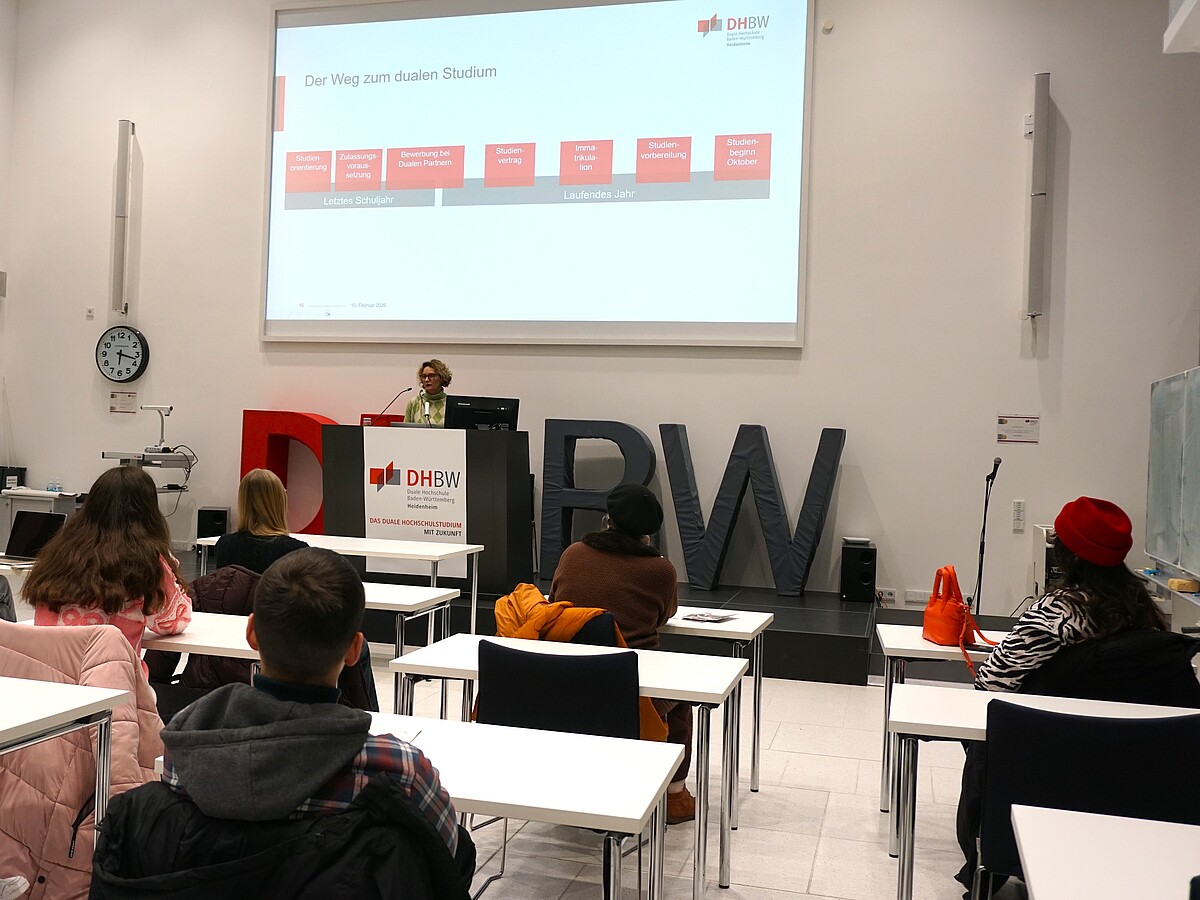 Im Fokus der Veranstaltung standen sowohl die Bachelor- als auch die Masterstudiengänge. Neben grundlegenden Informationen zum dualen Studiensystem erhielten die Teilnehmenden wertvolle Hinweise zu Studieninhalten, Bewerbungsprozessen sowie zu den besonderen Rahmenbedingungen eines Studiums an der DHBW Heidenheim.