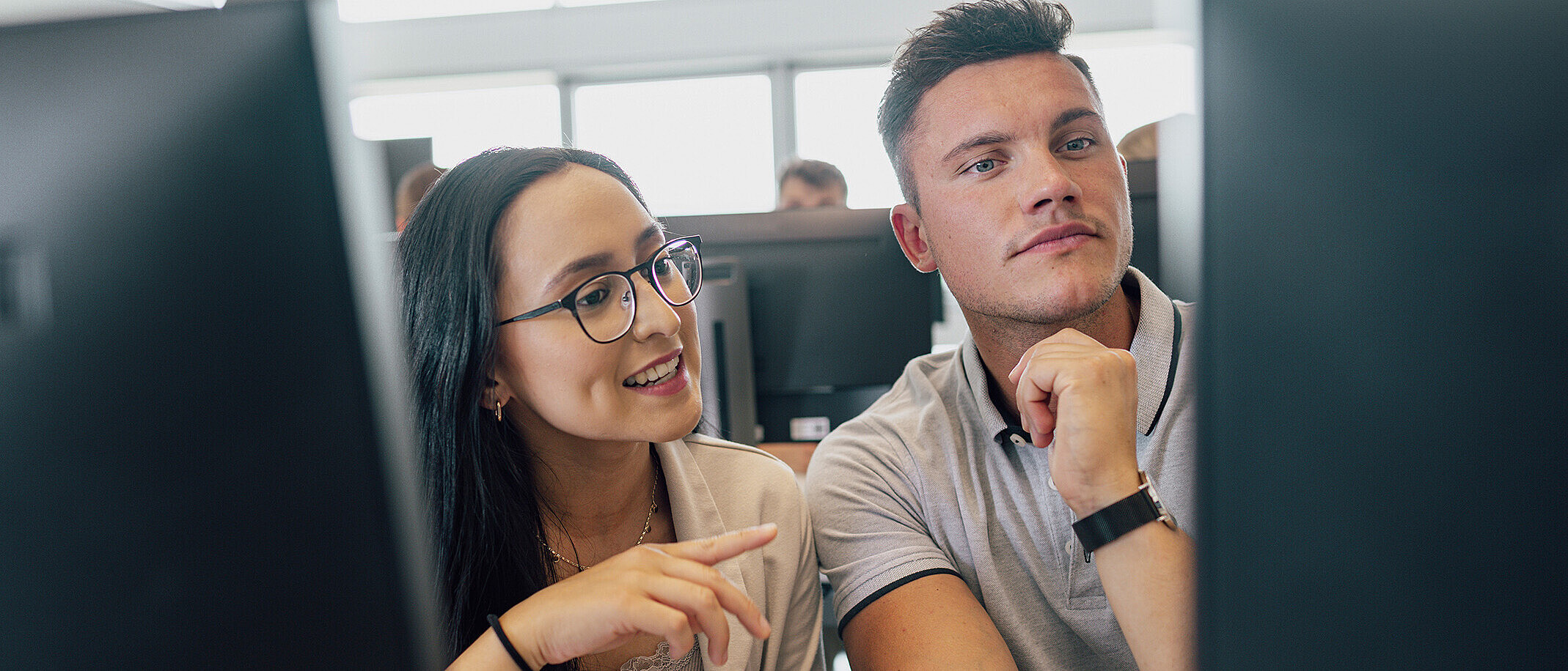 Digital Business Management verbindet Wirtschaft und Digitalisierung – genau dort, wo Unternehmen Innovation vorantreiben. Ob effiziente Abläufe, neue Geschäftsmodelle oder digitale Transformation: Du bist aktiv dabei und lernst, Prozesse zu hinterfragen und zu verbessern. Wenn du Interesse an IT und BWL hast und Spaß an abwechslungsreichen Aufgaben suchst, passt dieses duale Studium ideal zu dir. Wichtig sind dabei Neugier, Teamgeist und Kommunikationsstärke – Fähigkeiten, die du im Studium gezielt ausbaust.